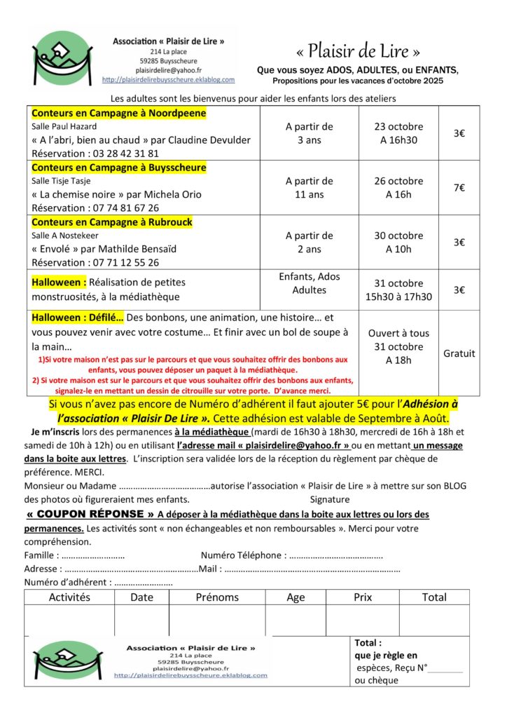 - Des rubriques » Animations et fêtes » et Activités de Plaisir de Lire sont crées pour annoncer les événements à venir etc ..